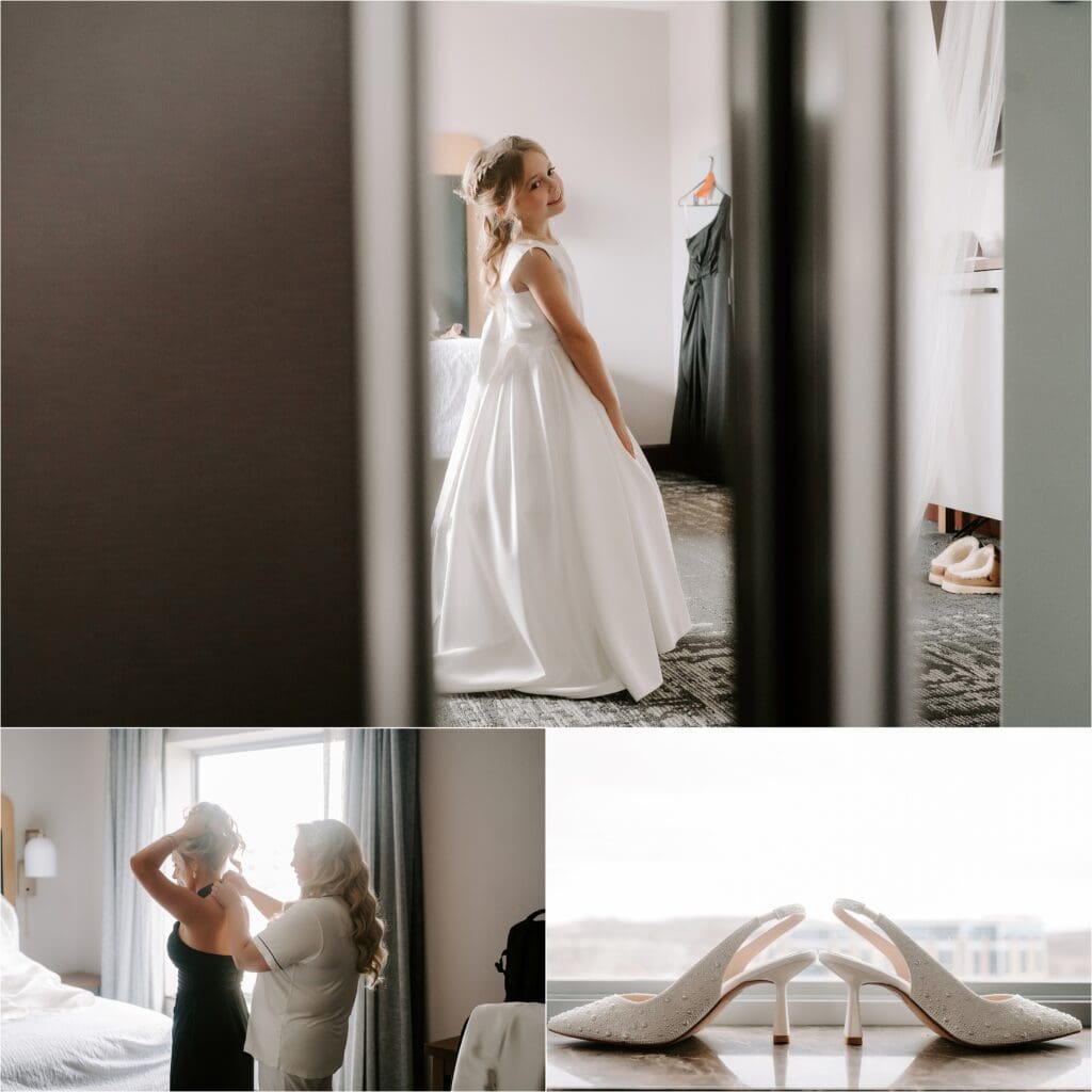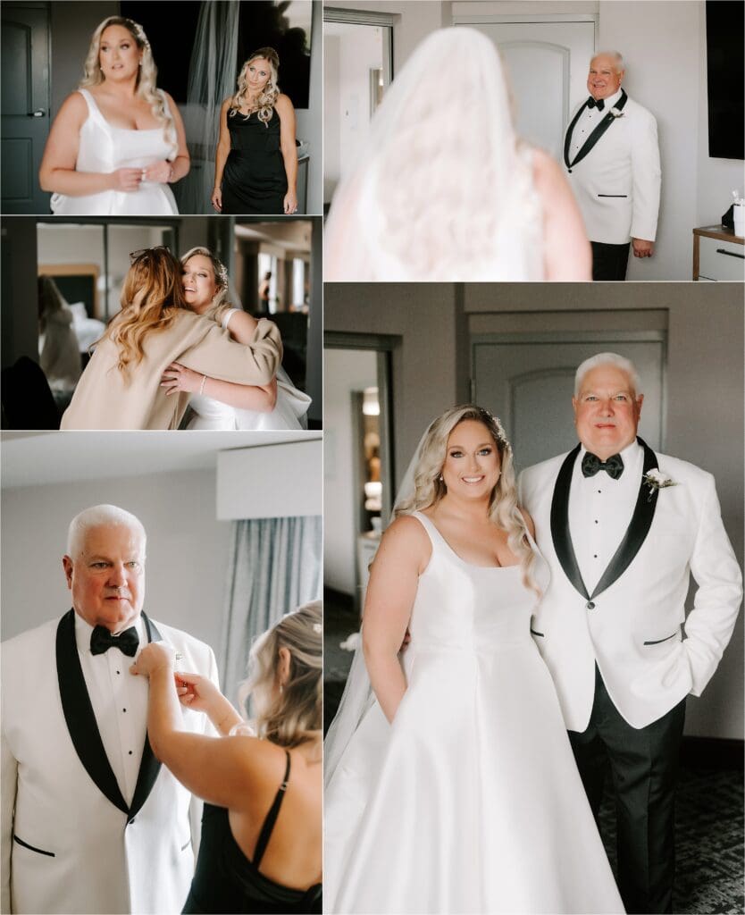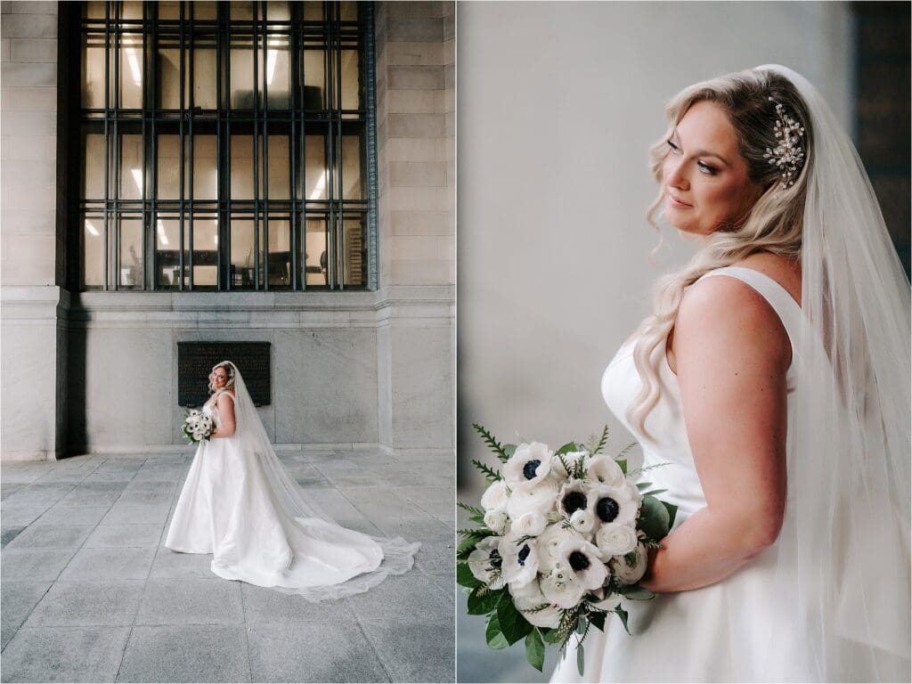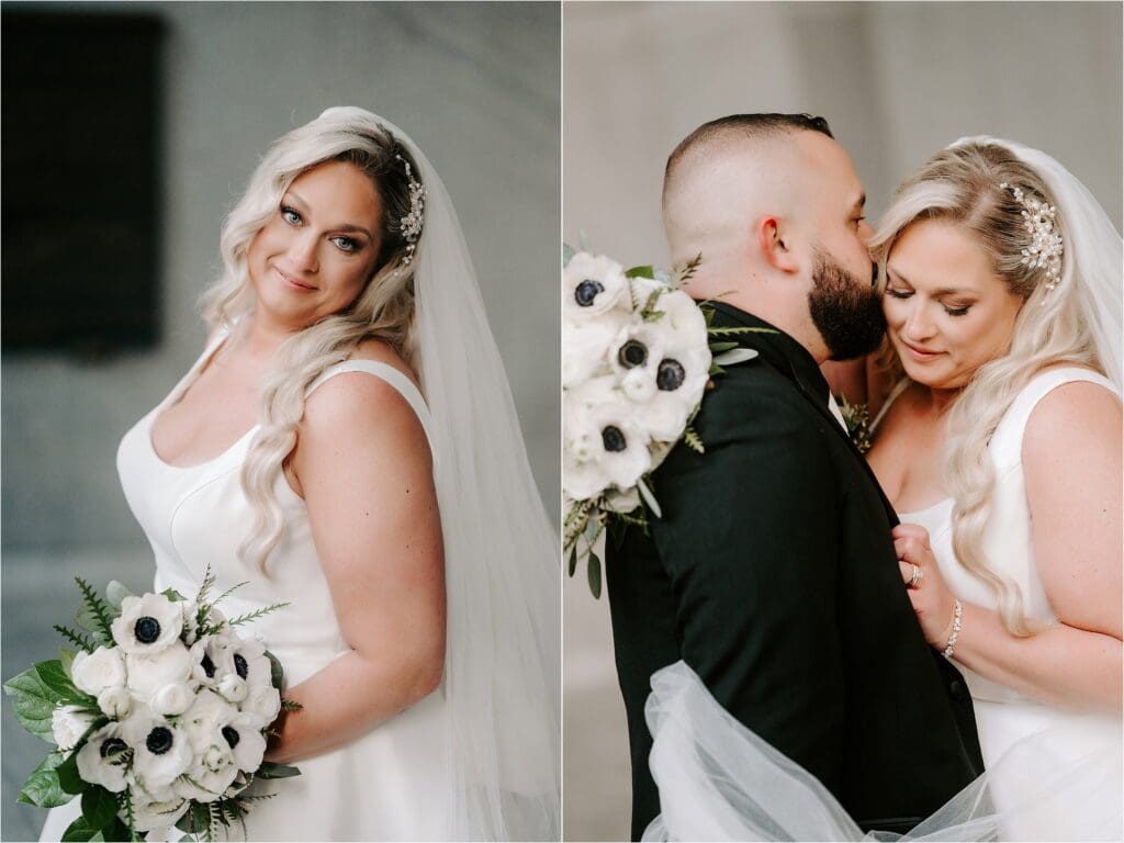 The Audrey’s modern architecture and neutral tones allowed us to create images with that classic, city-vibe energy she envisioned once we arrived at the venue – added bonus! – without needing a city backdrop. Jayme absolutely nailed the modern bride look, and Sean looked incredibly sharp in his tuxedo from Top Hat Tuxedo.