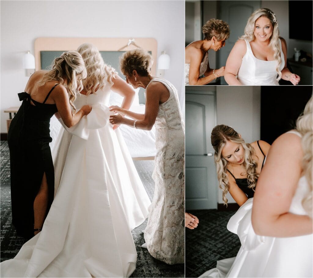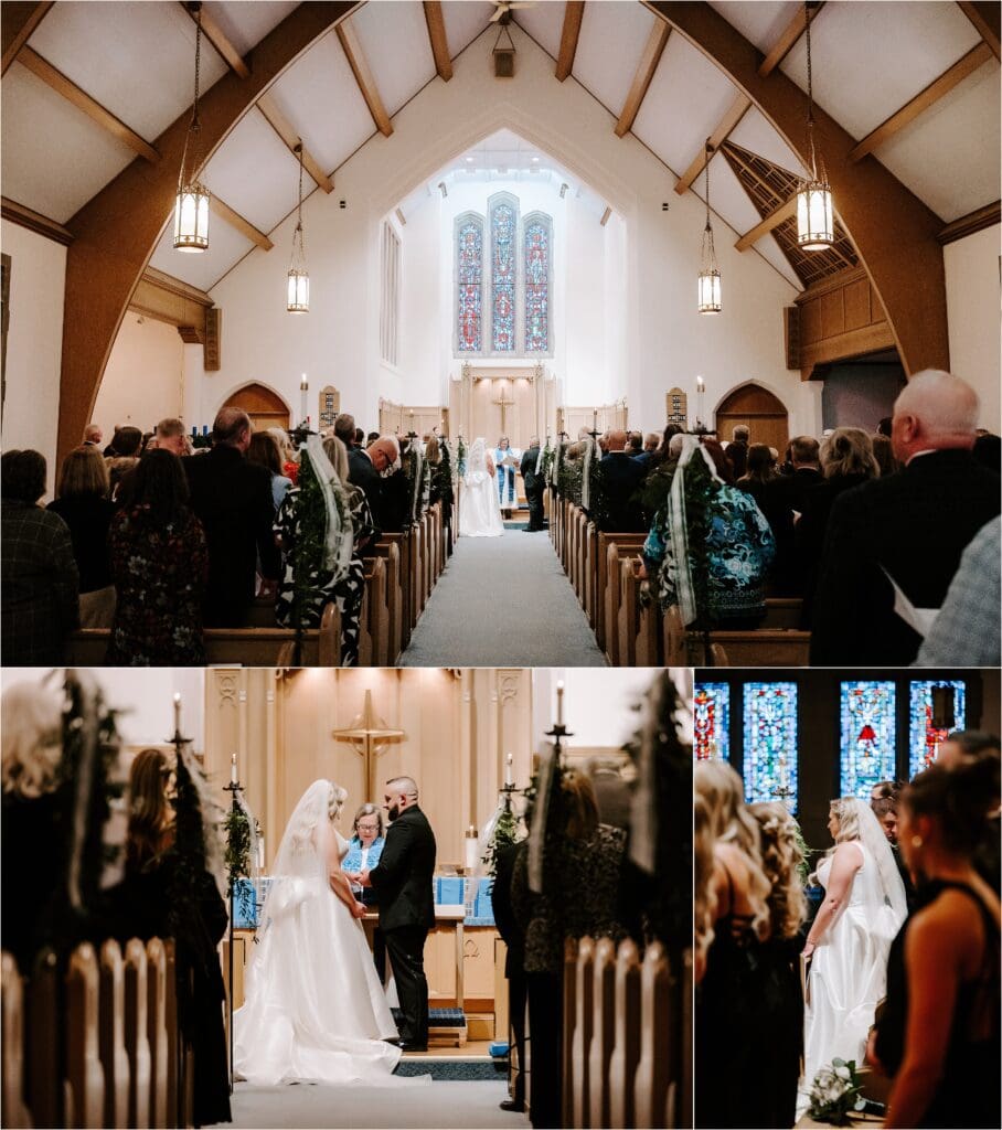 Jayme got ready with her closest friends and family, keeping the morning relaxed, joyful, and full of excitement. She wore a gorgeous gown from One White Lane Bridal Boutique — a perfect blend of modern structure and classic elegance. Her beauty team brought her entire look together: hair by Brandy Reed and flawless makeup by Alexis Vince, creating that fresh, polished finish that photographed beautifully all day long.