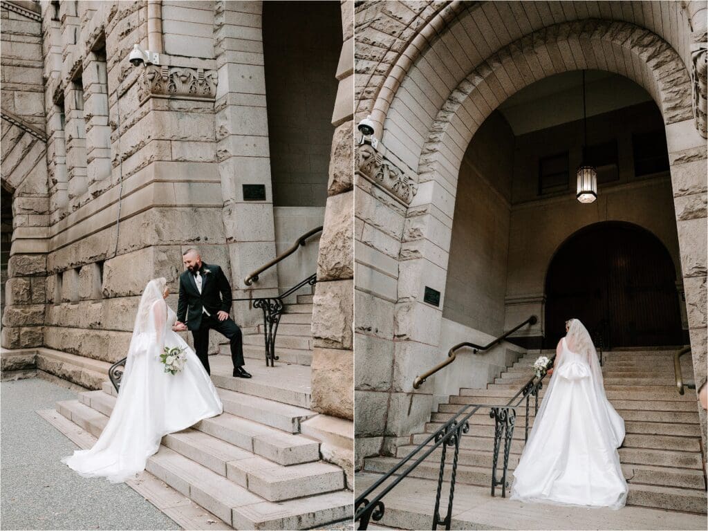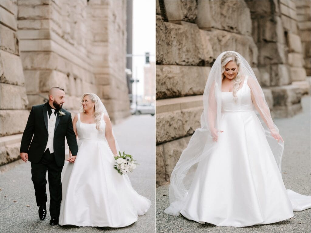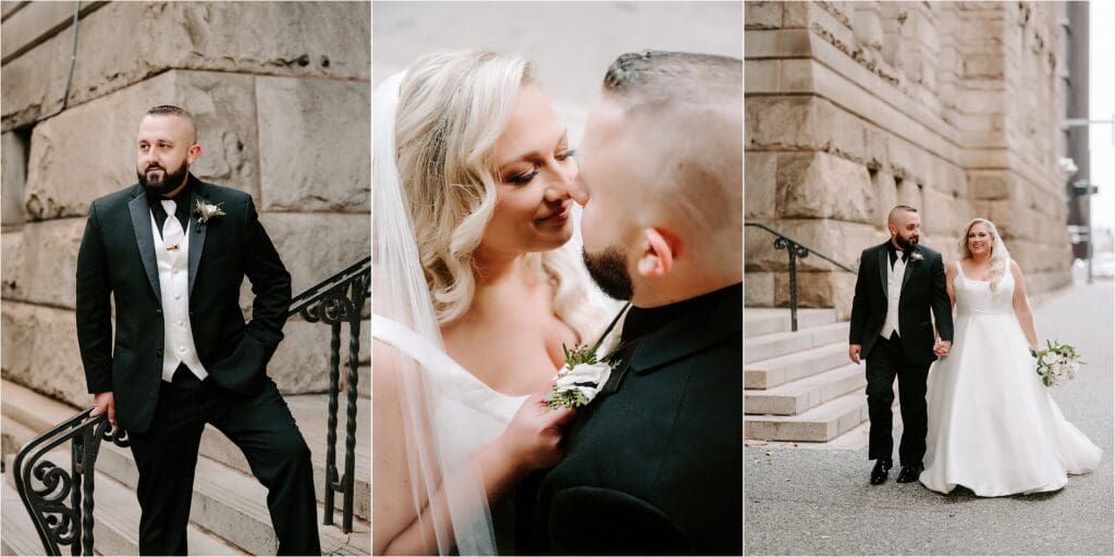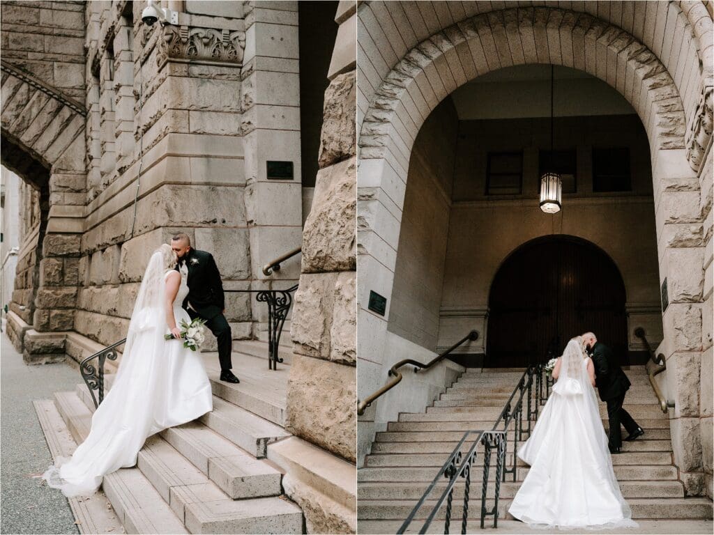 Even though we were outside the downtown Pittsburgh skyline, we created portraits that matched the urban aesthetic Jayme loved. Jayme told me multiple times that she loved some staircases, so I was determined to find her some stone Pittsburgh stairs that really photographed well. The back of the courthouse worked so well! Loved it there!