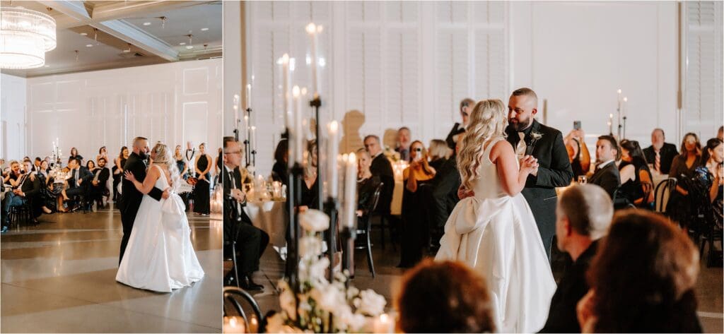 Jayme and Sean’s wedding at The Audrey in Canonsburg was a stunning example of modern, editorial-inspired design. Jayme envisioned a chic, city-vibe celebration, and The Audrey’s sophisticated, neutral aesthetic couldn’t have been a more perfect match. Their black-and-white palette, clean lines, and elegant details transformed the space into a stylish, contemporary dream.