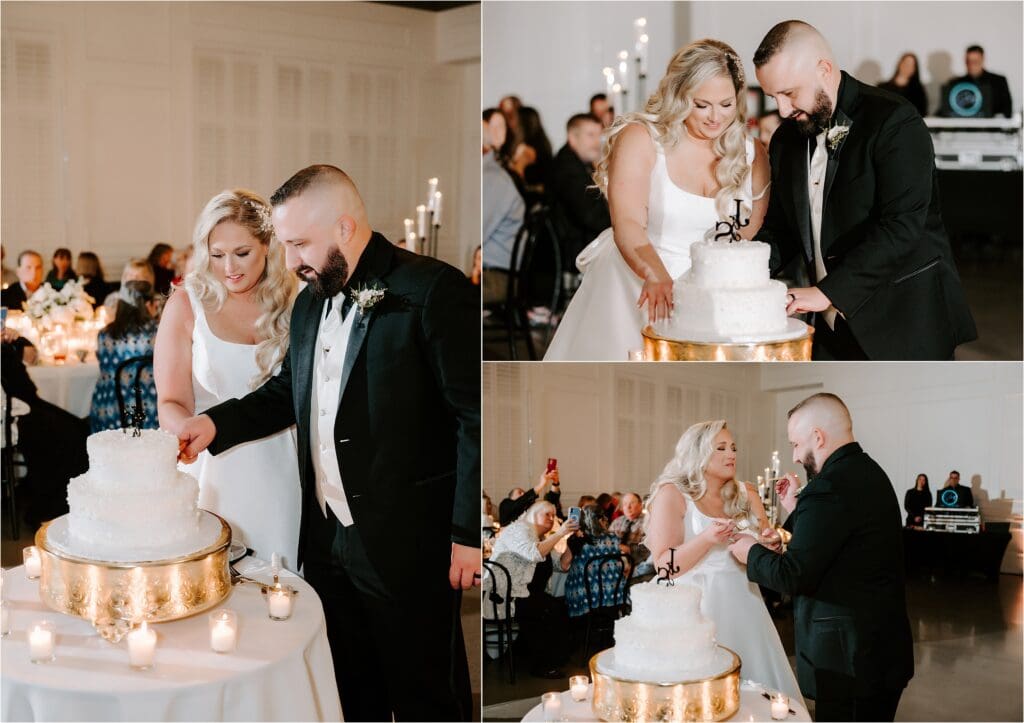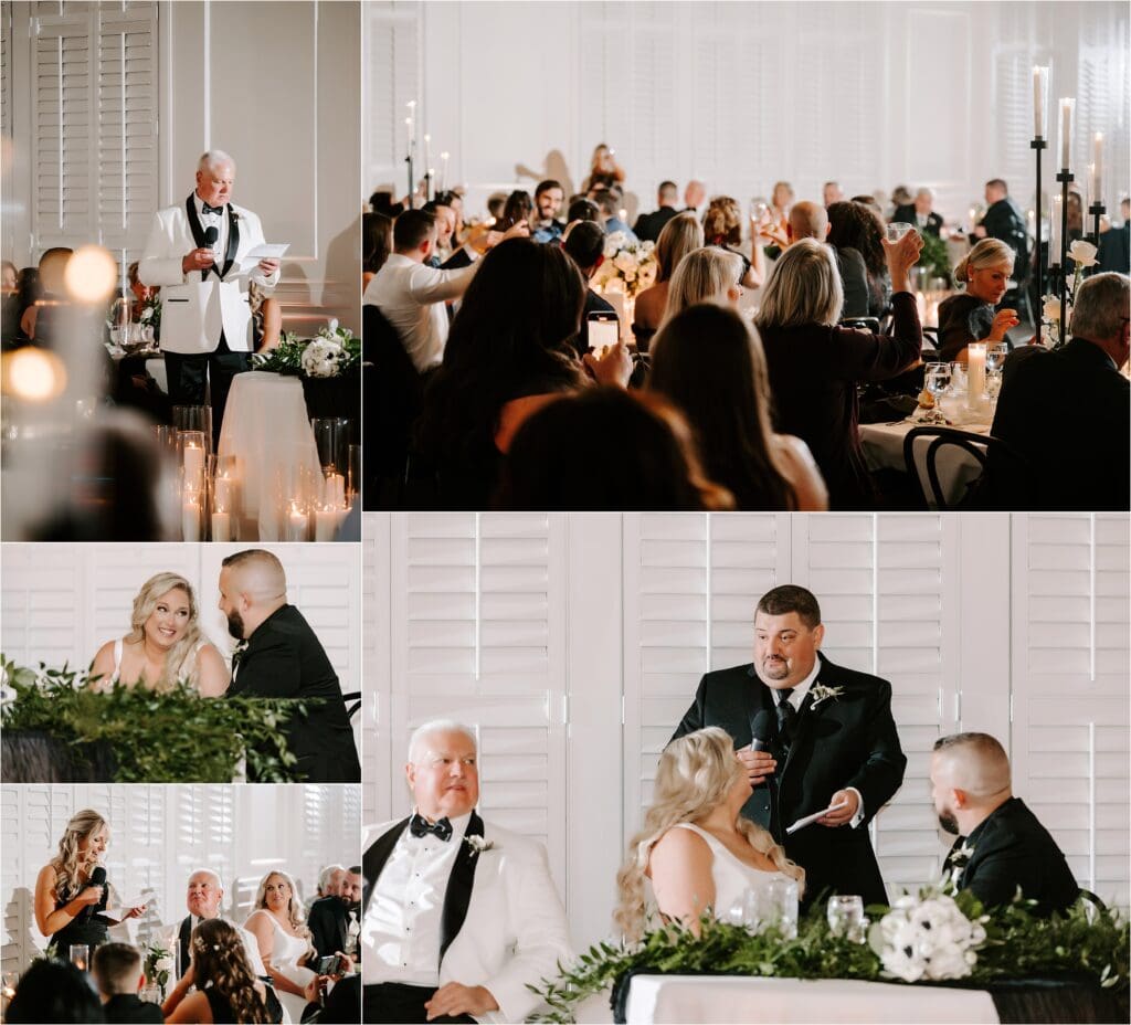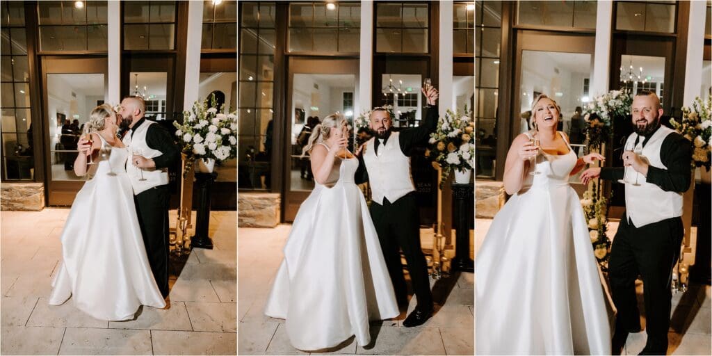 The floral designs by Export Floral embraced Jayme’s desire for a non-seasonal, city-inspired look — white florals, fresh greens, and plenty of texture without leaning into traditional fall colors. It fit the black-and-white theme beautifully and complemented The Audrey’s architecture and natural light.