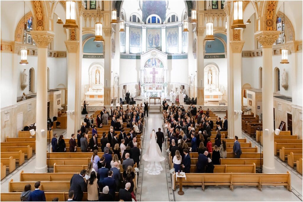 The ceremony took place at Epiphany Catholic Church, a beautiful and meaningful setting for exchanging vows. The architecture, high ceilings, and natural light created a timeless atmosphere that photographed beautifully.