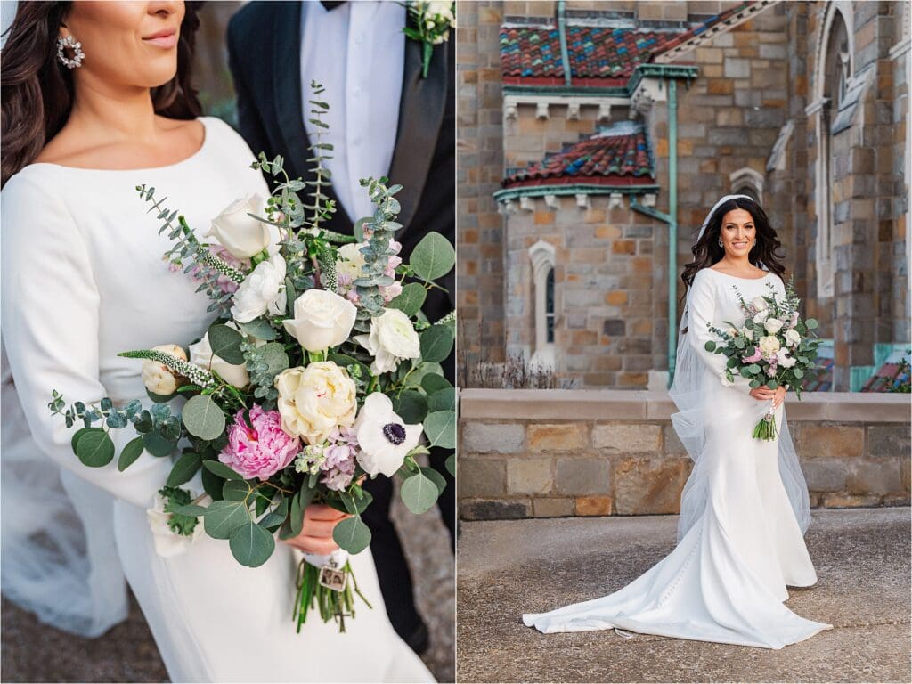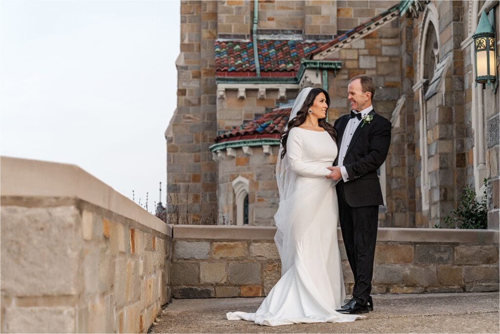 Lindsay and Evan hired me to photograph their church wedding at the most beautiful church in the South Hills of Pittsburgh: St Bernard Church in Mt. Lebanon. I actually love when I get to photograph couples and their families outside of the church in the immediate area, because the roof of the building is just beautiful in the background.